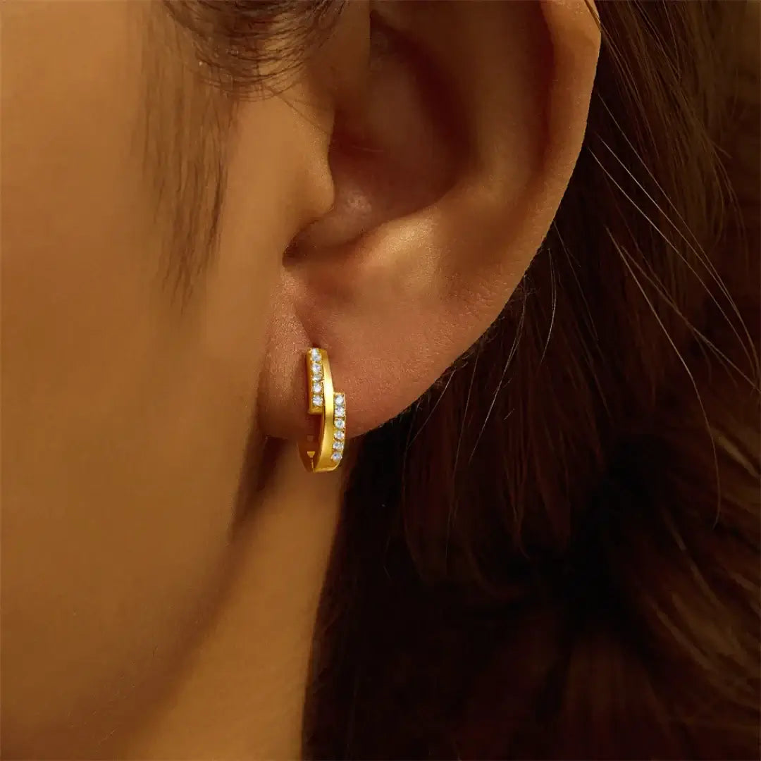 تقديم أقراط أحجار الزركونيا المكعبة غير المنتظمة للأبدية. تتميز هذه الأقراط المصممة للإدلاء ببيان ، بالماس المتألق من أحجار الزركونيا المكعّبة التي تخلق مظهرًا أنيقًا وجذابا للعين. مثالية لأي مناسبة ، تضيف أقراط العناق هذه لمسة من الرقي والسحر لأي ملابس. استثمر في الأناقة الخالدة مع هذه الأقراط الجميلة.