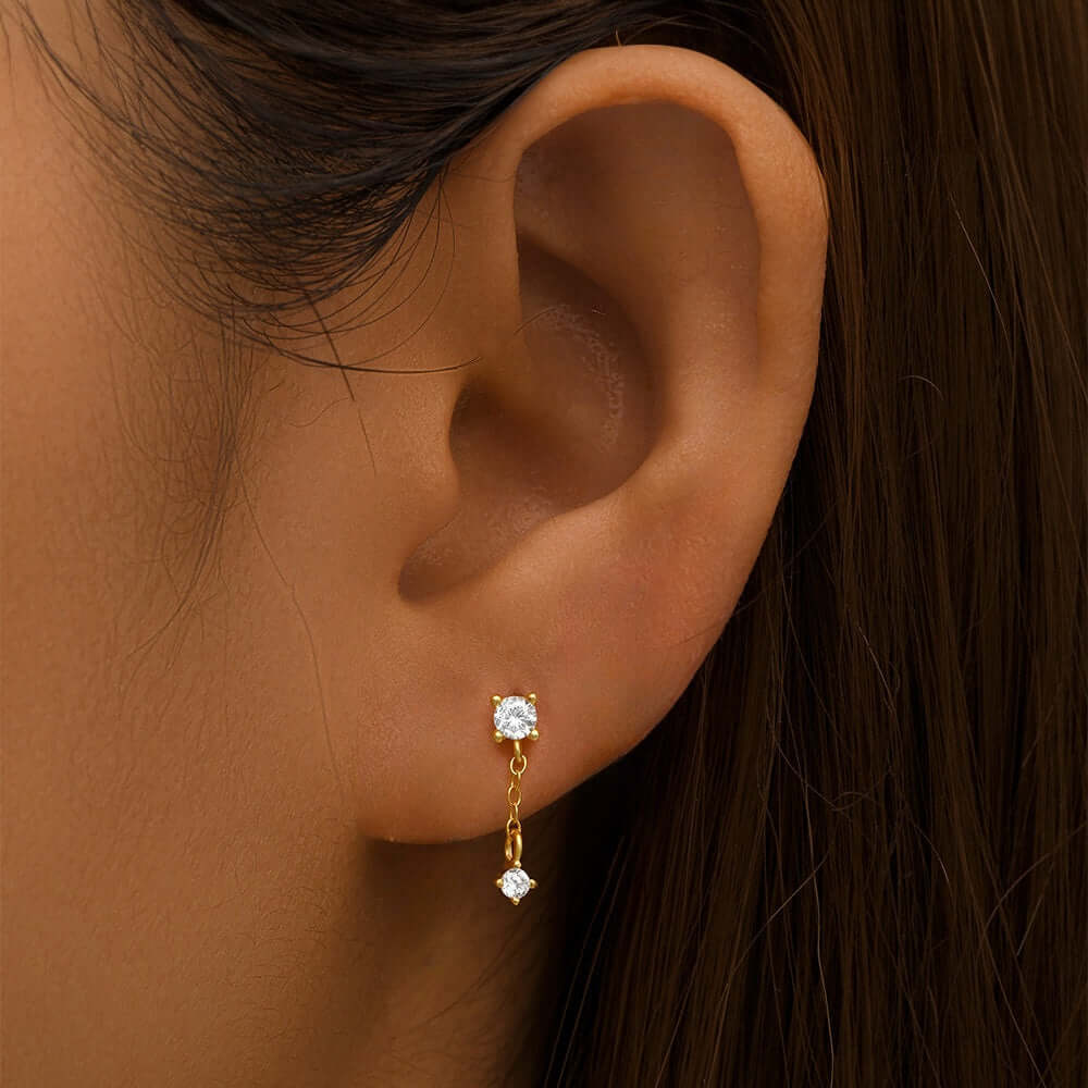 Shine bright with these 925 silver gold double diamond flat earrings! Perfect for any occasion, these earrings add a touch of elegance and sparkle to your look. Made with high-quality materials, these earrings are both stylish and durable. Elevate your style with these stunning earrings today!